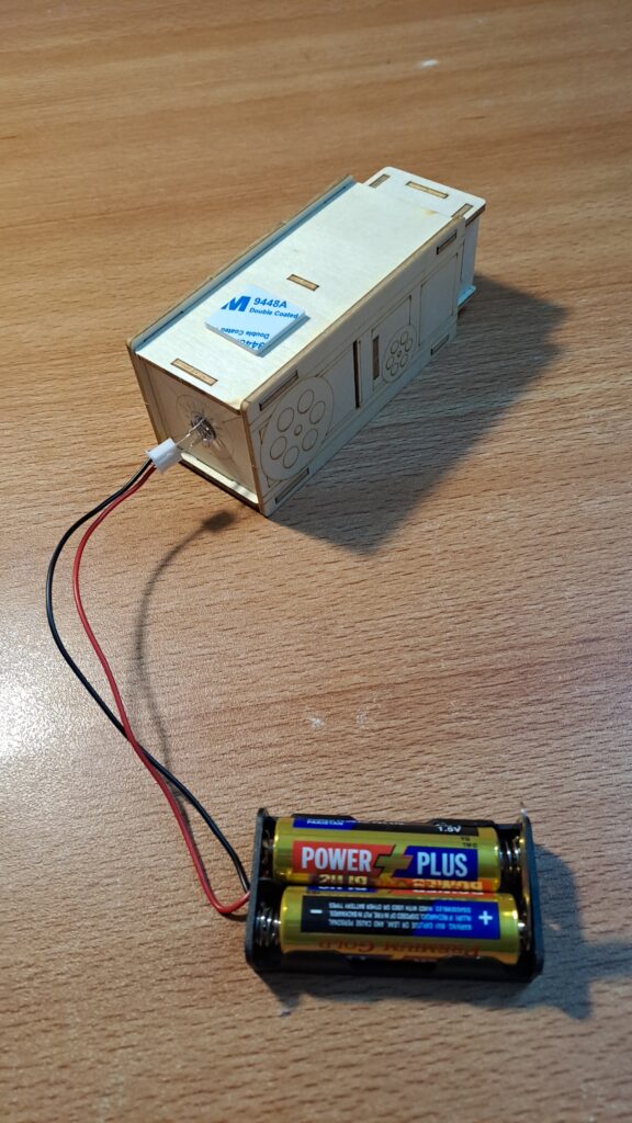 6. Insert the LED into the small hole on main wooden structure as shown below.