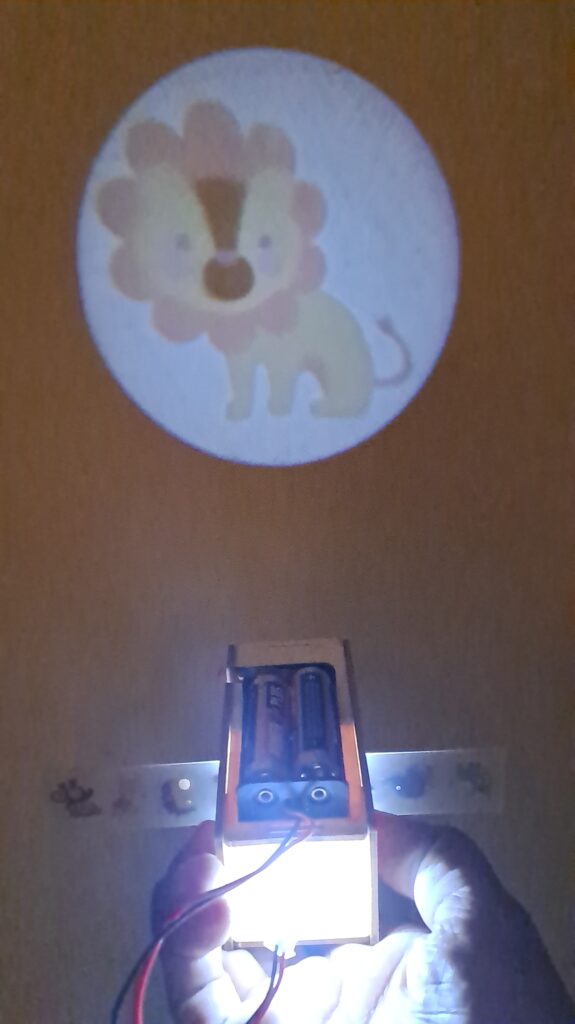 Once assembled, the DIY projector can project images onto a wall or screen using slider, light and lenses. By inserting a transparent slide inside the projector and switching on the light source, the image is magnified and projected forward.